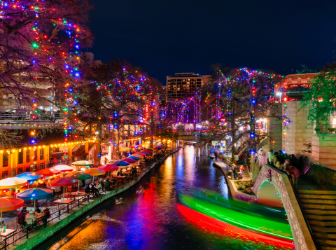 Experience the spectacular display of over 100,000 lights draped over the towering cypress trees that line the River Walk!
